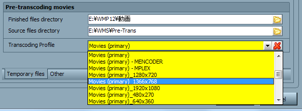 WildMediaServerには事前トランスコード(Pre-Transcoding)機能があります。