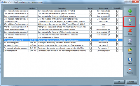 HotKeyやスケジュールを変更するには対象処理を選択し、”Edit”をクリックし設定画面を表示します。