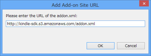 “http://kindle-sdk.s3.amazonaws.com/addon.xml”を入力し、”OK”ボタンをクリック