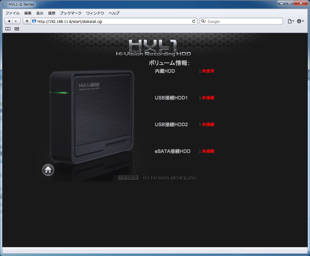 ブラウザーからアクセスすると、内臓HDDは認識されていません。