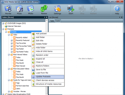 WildMediaServerにはポッドキャスト機能があり、Youtubeなどの動画配信サービスから動画をダウンロードしながらREGZAなどのクライアントへ配信することができます。事前に視聴したい動画をダウンロードして、保存しておく必要はありません。ポッドキャスト可能なサービス先として、色々用意されています。基本はスクリプトさえ作成すればサービスは追加できるようです。